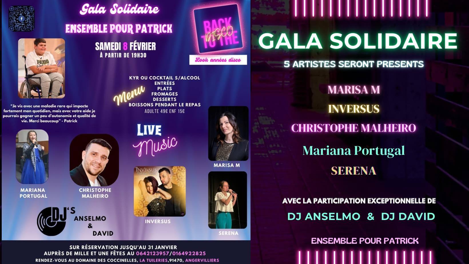 Para ajudar o jovem Patrick, o catering e organizador de eventos "Mil e Uma Festas" organiza umExcelente "GALA SOLIDARIEDADE",8 de fevereiro de 2025, às 19h30Temática DISCO, no lindo'Domínio de Ladybug'La Tuilerie - 91470 Angervilliers (Essonne. )As reservas estão a ser feitas, com"Mil e Uma Festas" até 31 de janeiro:Portátil : 06 42 12 39 57 Fixe...